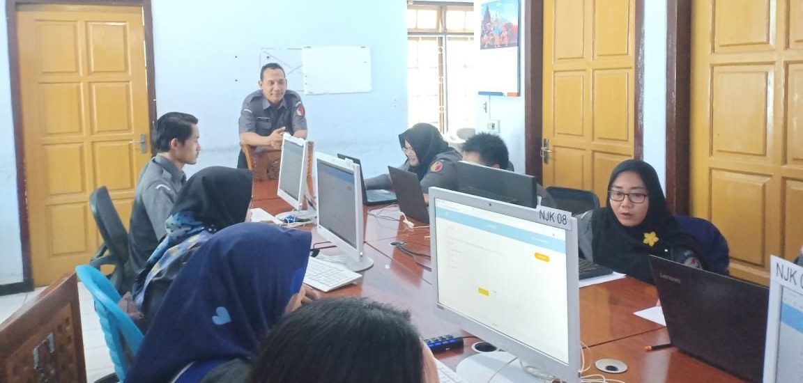 Zain Anis selaku staf pns membacakan tata tertib pelaksanaan tes, sedangkan Sri Utami (staf pns) memastikan semua perlengkapan peserta tes sudah memenuhi petunjuk teknis pelaksanaan seperti perlengkapan komputer, kekuatan wifi, dan memastikan peserta hadir di tempat 30 menit sebelum tes online dimulai.