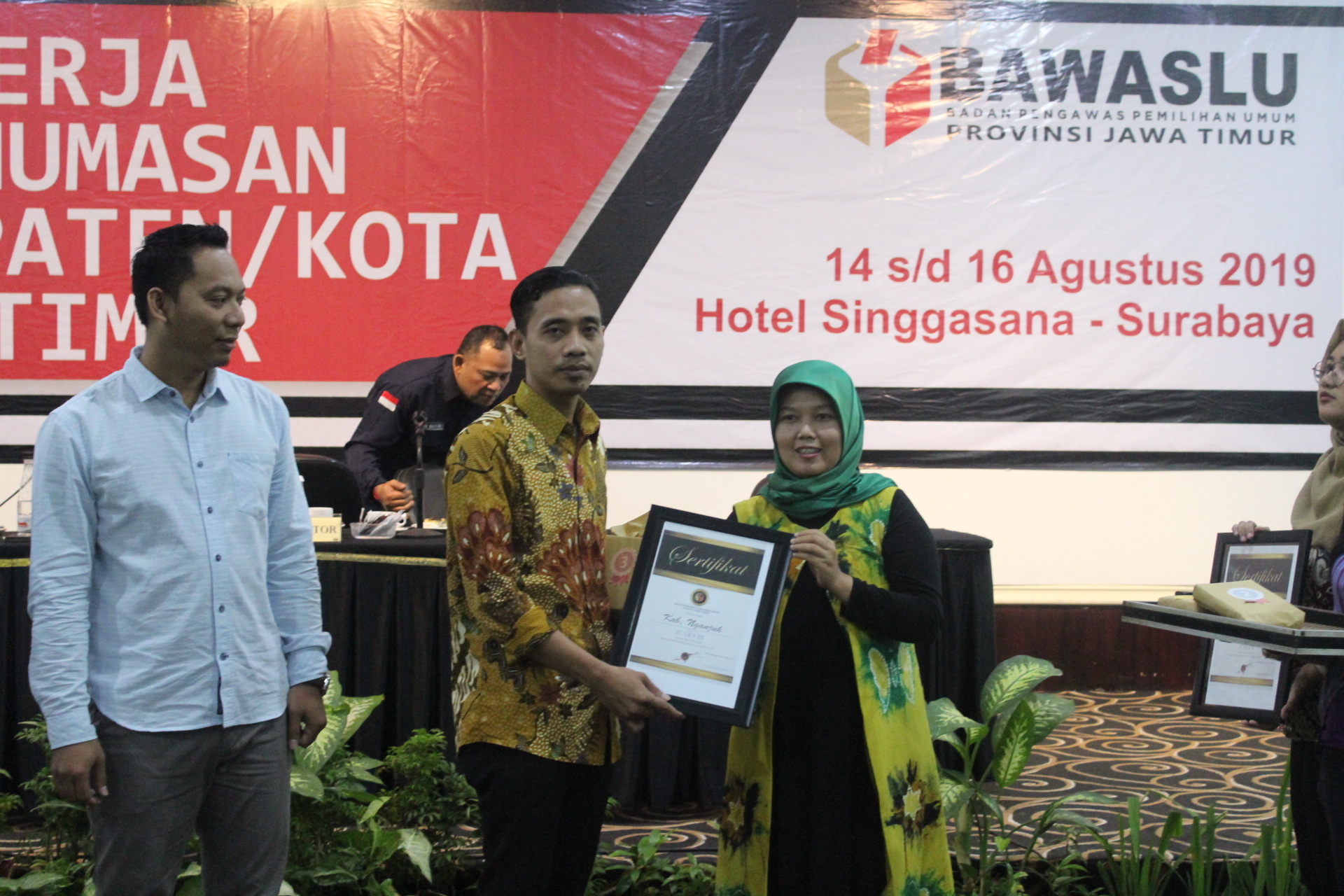 Nganjuk - Badan Pengawas Pemilu (Bawaslu) Kabupaten Nganjuk berhasil mendapat juara 3 dalam kompetisi website design yang diadakan oleh Bawaslu Provinsi Jawa Timur. Kompetisi ini diikuti 38 Bawaslu Kabupaten/Kota se-Jawa Timur yang bertujuan untuk meningkatkan kreativitas strategi kehumasan di masing-masing daerah. Penyerahan juara dalam kompetisi ini dilakukan oleh Nur Elly Anggraini selaku Anggota Bawaslu Provinsi Jawa Timur yang membidangi kehumasan pada acara Rapat Kerja Teknis Kehumasan Kabupaten/Kota se-Jawa Timur yang digelar selama tiga hari di Hotel Singgasana, Surabaya, Jumat (16/08/2019).