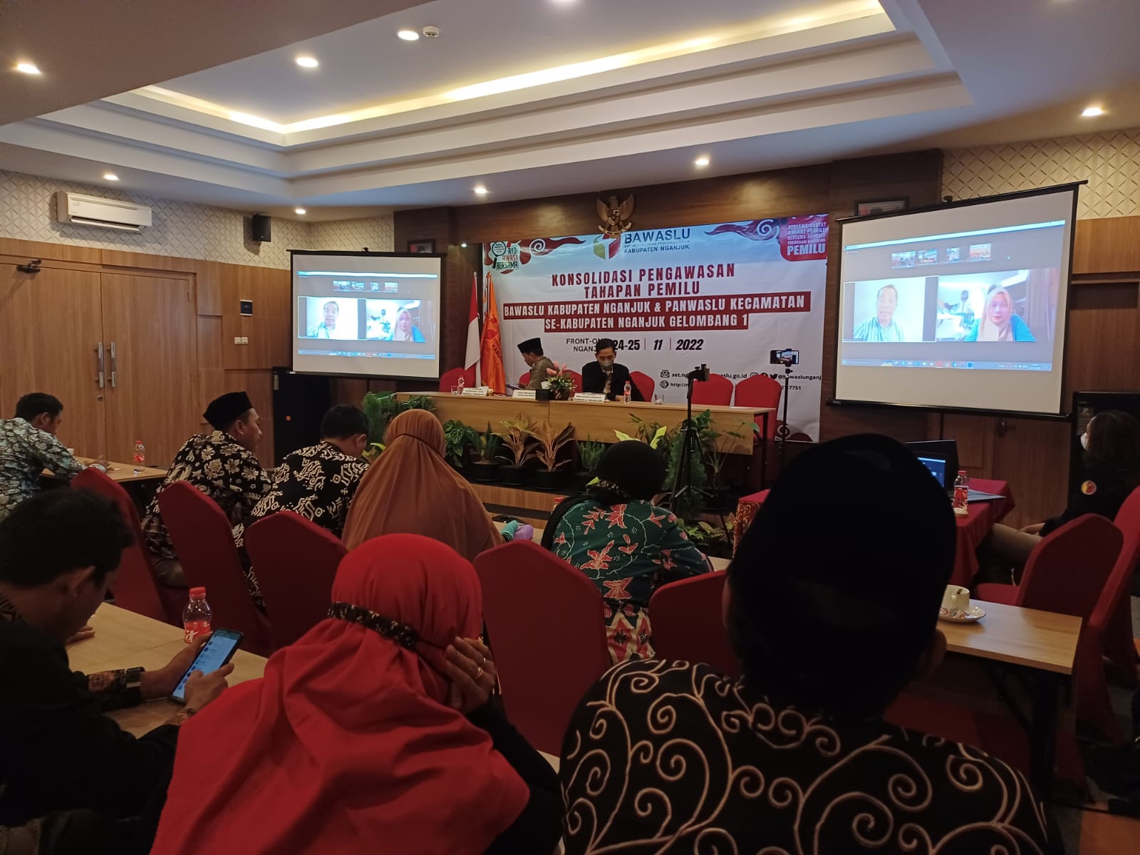 nganjuk.bawaslu.go.id- Gelar Konsolidasi Pengawasan Tahapan Pemilu bersama Bawaslu Nganjuk, dan Panwaslu Kecamatan di Kabupaten Nganjuk (Gelombang 1), dilaksanakan pada 24-25 November 2022 di Front-One Hotel Nganjuk. Peserta dari 10 Kecamatan terundang dan KPU Nganjuk sebagai pemateri.