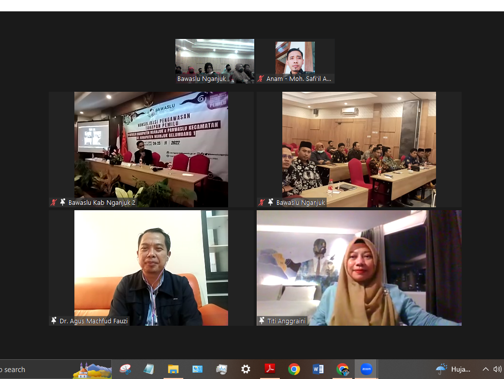 Narasumber 1 yakni : Dr. Agus Machfud Fauzi, M.Si. Memaparkan terkait Regulasi dan tantangan pada pemilu 2024. Agus sampaikan bahwa, "Pelaksanaan kampanye melalui media sosial menjadi tugas berat bagi Bawaslu apabila tidak ada terobosan dalam mengatasi potensi jutaan akun yang menyebarkan informasi dan konten negatif selama masa kampanye" sampaikannya dalam memberikan materi secara daring.