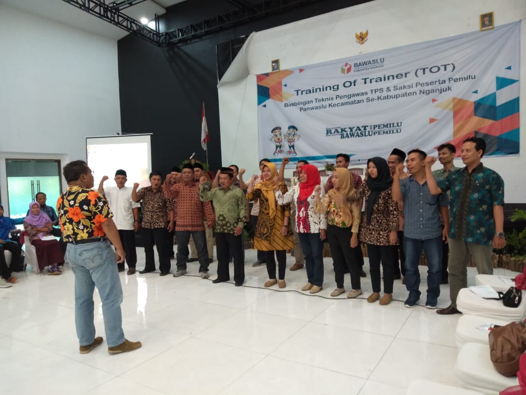 Jelang pelantikan Pengawas Tempat Pemungutan Suara (PTPS), Bawaslu Kabupaten Nganjuk gelar Training of Trainer (TOT) kepada Panwascam dari 20 Kecamatan se Kabupaten Nganjuk. ToT ini diikuti 80 peserta yang terdiri dari masing-masing 3 komisioner Panwascam dan 1 staf yang diselenggarakan selama dua hari, Jumat sampai Sabtu (23/3/2019), di Hotel Bukit Daun Kediri.