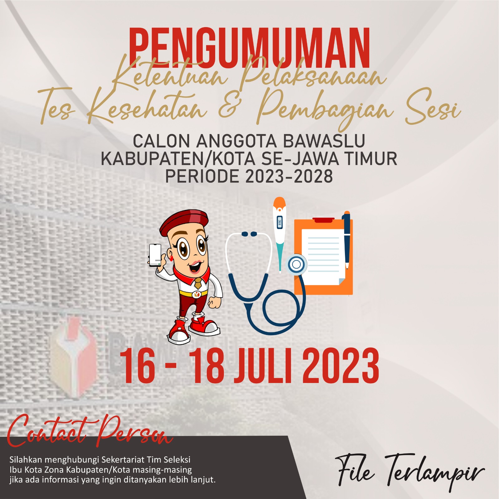 nganjuk.bawaslu.go.id- Berikut info lebih lanjut mengenai ketentuan pelaksanaan dan pembagian sesi pelaksanan tes kesehata, dapat diakses dan didownload dibawah ini :