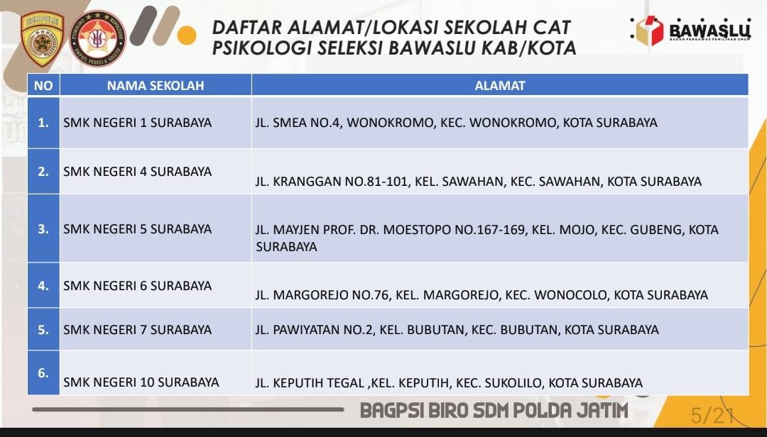 PENGUMUMAN PELAKSANAAN TES PSIKOLOGI BAGI CALON ANGGOTA BAWASLU KABUPATEN/KOTA SE-JAWA TIMUR MASA JABATAN 2023 – 2028