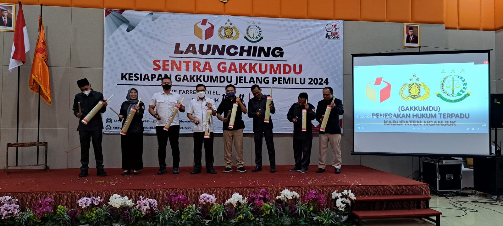 Sentra Penegakan Hukum Terpadu (Gakkumdu) merupakan pusat aktivitas penegakan hukum tindak pidana Pemilu khususnya di Kabupaten Nganjuk. Ditabuhnya Kentongan Bambu secara bersamaan oleh Anggota Gakkumdu sebagai simbol telah dilaunchingnya Sentra Gakkumdu dalam Kesiapan Jelang Pemilu 2024.