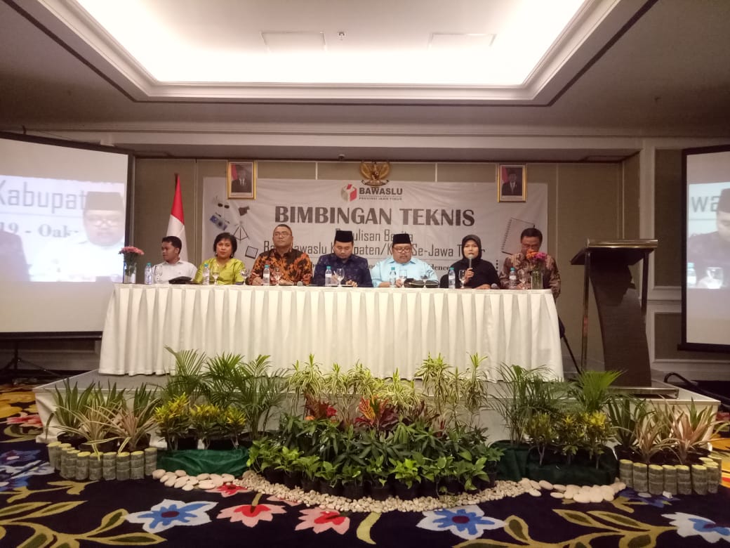 Bimbingan teknis dihadiri oleh 38 Bawaslu Kabupaten/Kota dengan perwakilan satu Kordiv dan dua staf Kehumasan sebagai (penulis berita & desain grafis). Dengan pemateri dari Bawaslu Jawa Timur yakni Moh Amin selaku Ketua Bawaslu Jawa Timur, Nur Elya Anggraini selaku Koordinator Divisi Humas dan Hubal, Muh Ikhwanudin Alfianto selaku Koordinator Penindakakan Pelanggaran, dan Nanang Priyanto selaku Kasubag Hukum, Humas, dan Hubal sekaligus sebagai Ketua Pelaksana tersebut.