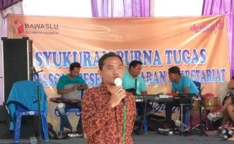 Sambutan Ketua Pelaksana Kegiatan Syukuran Purna Tugas Panitia Pengawas Pemilu Kecamatan Nganjuk, Anggota Bawaslu Kabupaten Nganjuk beserta jajaran sekretariat mengahdiri acara syukuran yang di gelar di halaman rumah
