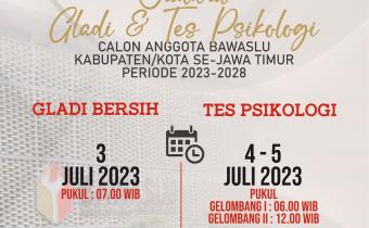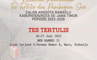 nganjuk.bawaslu.go.id- Dalam rangka melaksanakan amanat Undang – Undang Nomor 7 Tahun 2017 tentang Pemilihan Umum; setelah melakukan penelitian berkas administrasi dan rekapitulasi peserta yang telah mengikuti tes tertulis bakal calon anggota Bawaslu Kabupaten/Kota di Jawa Timur.