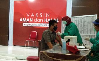 Nganjuk.bawaslu.go.id – Ketua dan Anggota beserta Staf Sekretariat Bawaslu Kabupaten Nganjuk mengikuti program vaksinasi Covid-19 yang difasilitasi oleh Dinas Kes