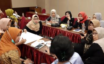 Fina Lutfiana (kiri), Abd Syukur Junaidi, Abdul Azis, dan Fathur Rahman (kanan) dalam Kegiatan Peningkatan SDM Alumni SKPP dalam Pengawasan Partisipatif, Senin(26/10