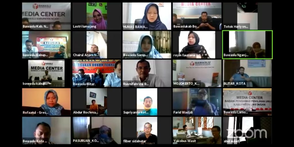 Bawaslu Nganjuk berpartisipasi secara langsung melalui media online vidcon zoom dengan Bawaslu Jawa Timur bersama dengan Bawaslu Kab/Kota lainnya se Jawa Timur (02/05).