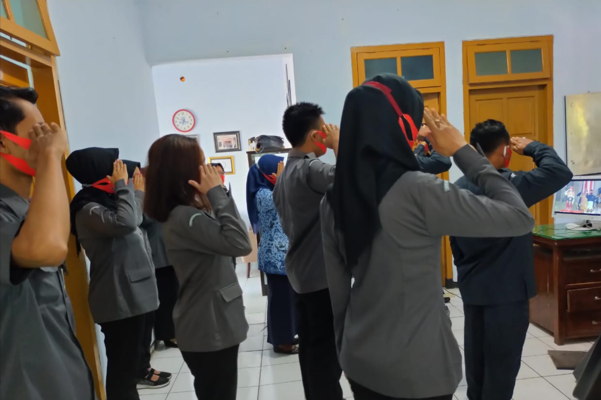 Nganjuk (nganjuk.bawaslu.go.id) Badan Pengawas Pemilihan Umum (Bawaslu) Kabupaten Nganjuk mengikuti berlangsungnya upacara peringatan Hari Ulang Tahun (HUT) ke-75 Kemerdekaan Republik Indonesia melalui siaran virtual live dari Istana Presiden, Senin (17/8).