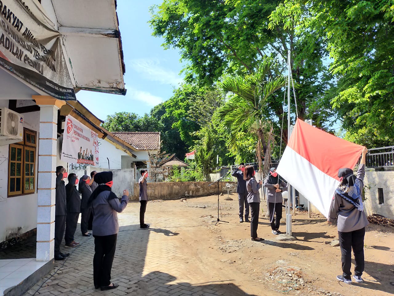 Tidak hanya melaksanakan upacara secara virtual, Bawaslu Kab. Nganjuk juga melaksanakan upacara Kemerdekaan RI ke-75 secara fisik di halaman kantor Bawaslu Kabupaten Nganjuk dengan tetap mematuhi protokol kesehatan covid-19.