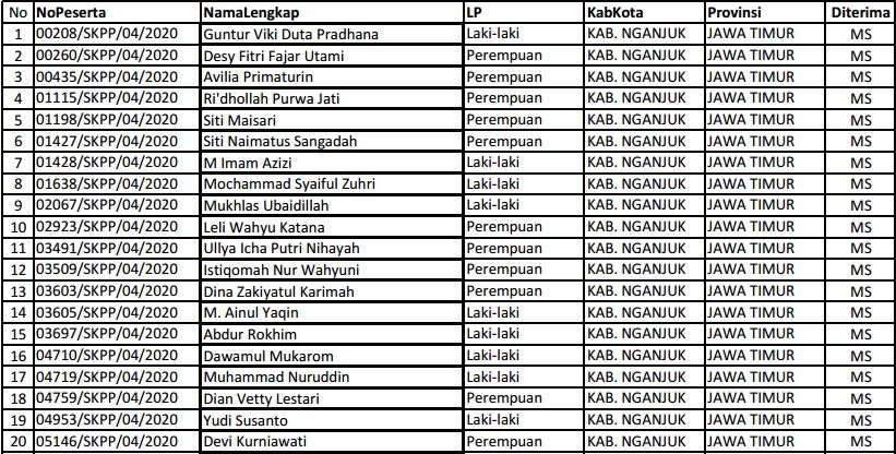 Pengumuman Peserta Lolos SKPP Daring dari Kabupaten Nganjuk