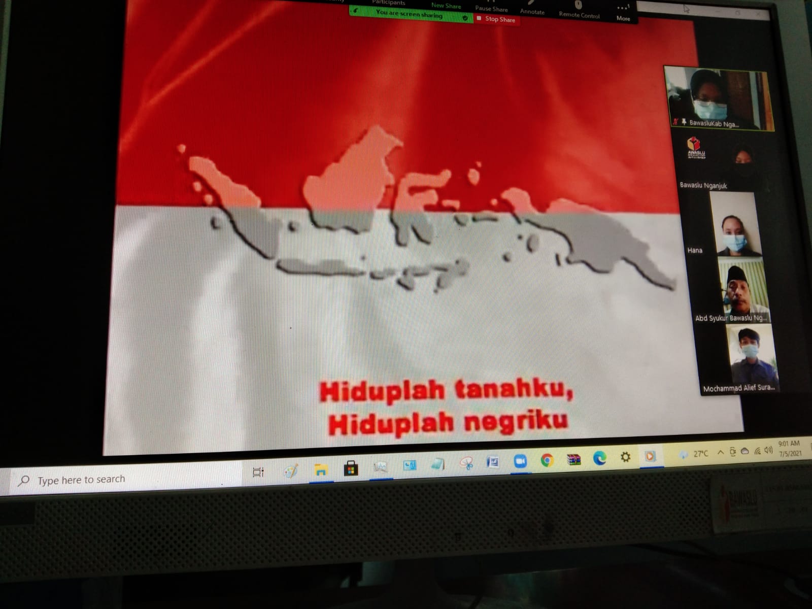 Dalam masa Pemberlakuan Pembatasan Kegiatan Masyarakat (PPKM) Darurat, Bawaslu Nganjuk melakukan Apel Rutin setian hari Senin, kali ini dilakukan secara daring via zoom meeting (05/06). Sebagai Pembina Apel, Koordinator Divisi Sengketa Bawaslu Nganjuk Abd. Syukur Junaidi menyampaikan bahwa baik pelayanan juga pekerjaan dikantor akan terus berjalan baik meski Bawalsu Nganjuk sedang menerapkan sistem kerja Work From Home (WFH) 100 persen.