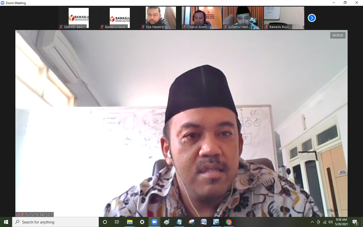 Purnomo sampaikan Rencana Kegiatan HDI melalui Rapat Online Bawaslu se-Jawa Timur