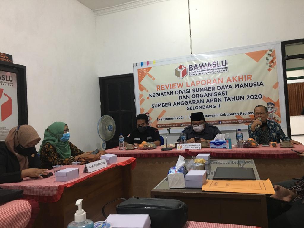 nganjuk.bawaslu.go.id ─ Abdul Azis sebagai Kordiv OSDM Bawaslu Kabupaten Nganjuk dan Diah Nawang Pratiwi (Staf) menghadiri undangan Review Laporan Akhir Kegiatan Divisi Sumber Daya Mnausia dan Organisasi, Kegiatan dilaksanakan di Kantor Bawaslu Pacitan acara dilaksanakan selama 2 hari mulai tanggal 1-2 Februari 2021.