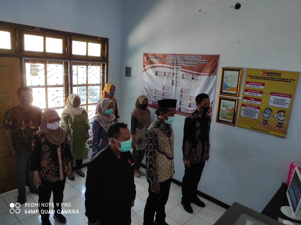 Upacara Peringatan secara virtual yang dilaksanakan di Kantor Bawaslu Kabupaten Nganjuk ini adalah bentuk tindak lanjut dari Surat Edaran Bawaslu Republik Indonesia Nomor: 0323/K.Bawasku/HM.03.00/IX/2020 tentang tatacara pelaksanaan peringatan hari kesaktian pancasila tahun 2020 dengan Tema yang diusung pada peringatan tahun ini adalah “Indonesia Maju Berlandaskan Pancasila”.