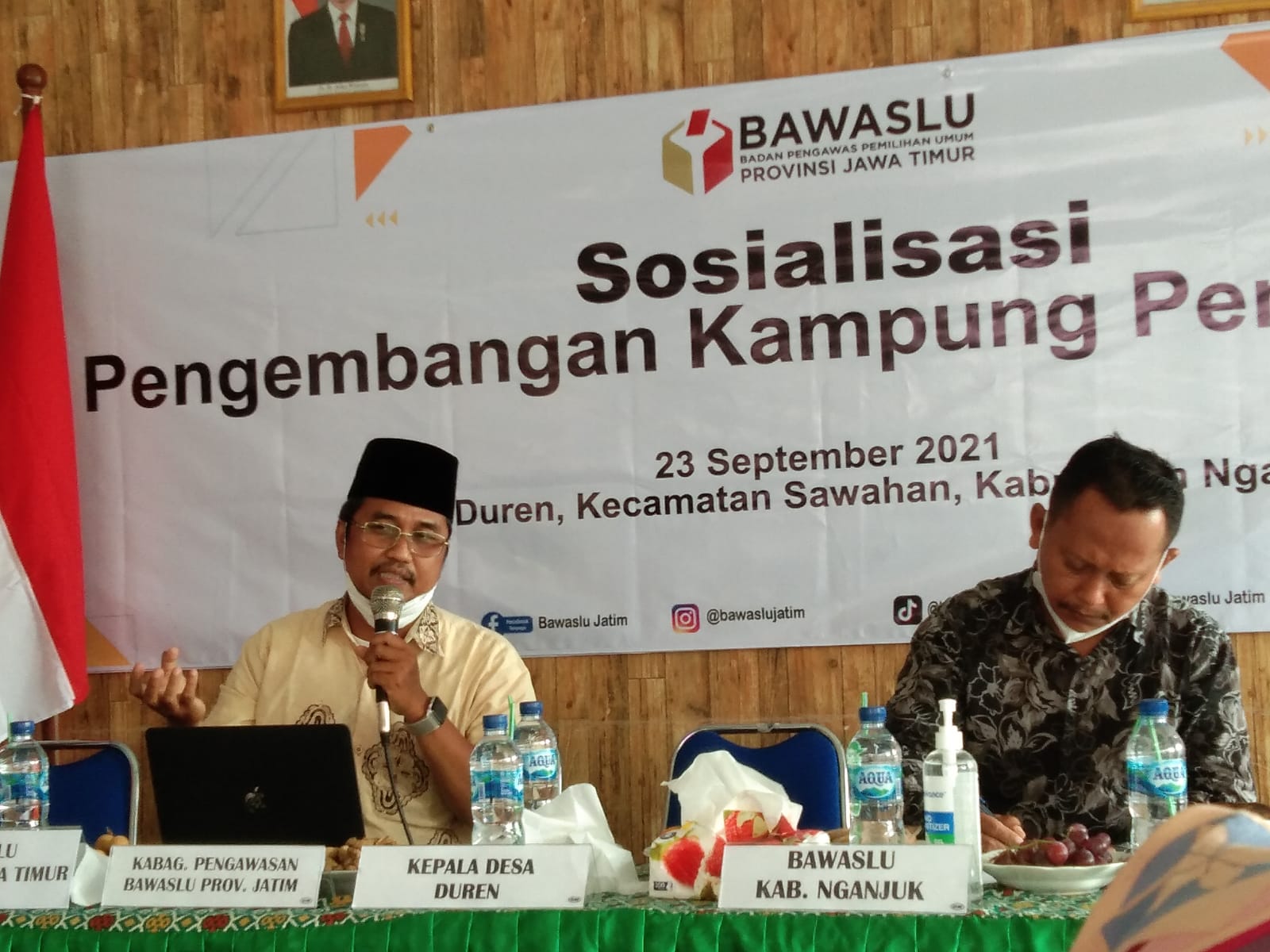Ucapan Banyak Terima Kasih disampaikan Azis terhadap Bawaslu Jawa Timur yang telah berkenan menyambangi Kampung Pengawasan di Nganjuk, dengan melaksanakan kegiatan sosialisai pengembangan kampung pengawasan di Desa Duren, ucap Azis.