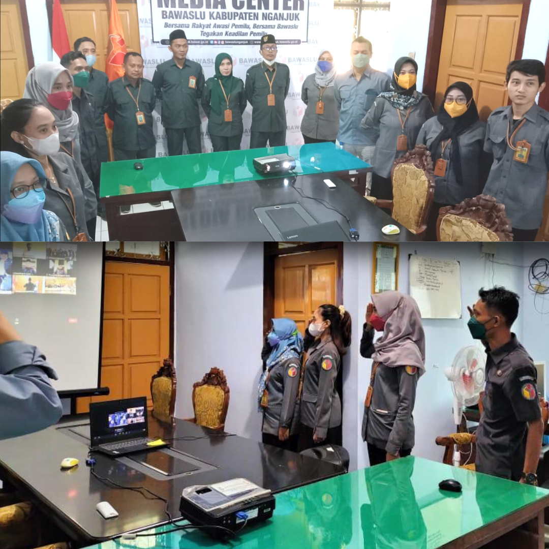 nganjuk.bawaslu.go.id- Dimulainya tahapan Pemilihan Umum (Pemilu) serentak 2024, Bawaslu Kabupaten Nganjuk dan jajaran Sekretariat melaksanakan Apel Siaga Pengawasan Pemilu Tahun 2024 secara daring, Selasa (14/6).