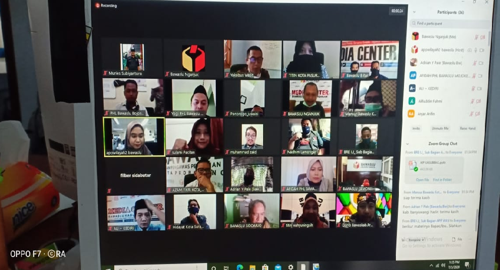 nganjuk.bawaslu.go.id ─ Nganjuk dan 37 Kab/Kota Bawaslu se-Jawa Timur hadiri acara yang diselengarakan oleh Bawaslu RI secara daring. Dalam kegiatan Rapat Sosialisasi hasil survey nasional udpdate pemetaan kerawanan pilkada 2020 tahap 1 pada hari Jumat (03/07/2020).
