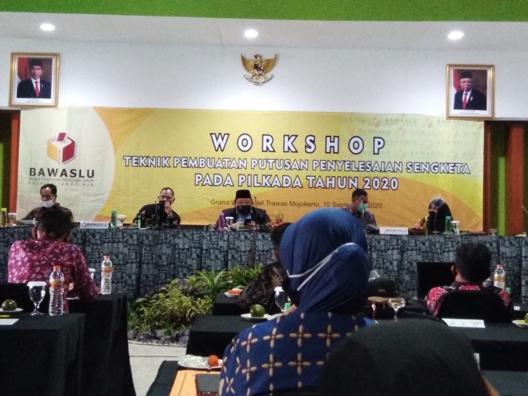 UPAYA PENINGKATAN PEMAHAMAN PROSES PENYELESAIAN SENGKETA, BAWASLU JATIM ADAKAN WORKSHOP TEKNIK PEMBUATAN PUTUSAN PENYELESAIAN SENGKETA PADA PILKADA TAHUN 2020